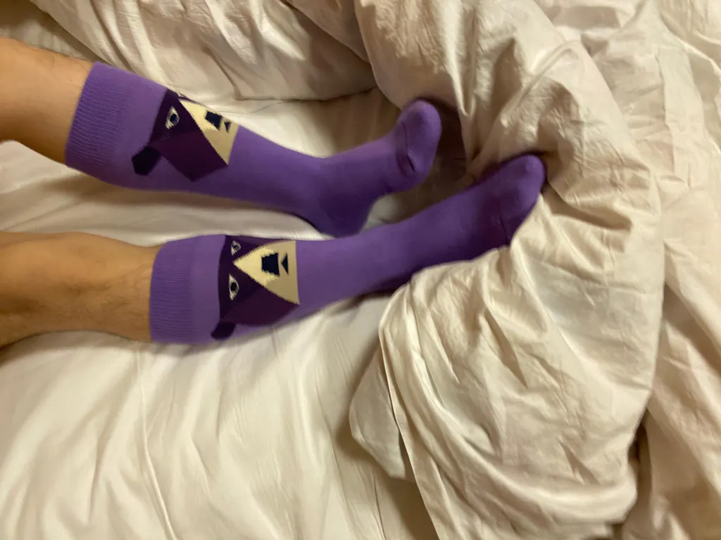 The bold prints will add a pop of color and style to any outfit. It peeks out from sneakers, slides, chunky clogs, or ankle boots to create a unique look. The purple hue complements a range of colors, including brown, red, nude, white, and black, making them a versatile addition to any wardrobe. Wear them with basics to make a statement or mix and match with other bold patterns for a fun and eclectic look.